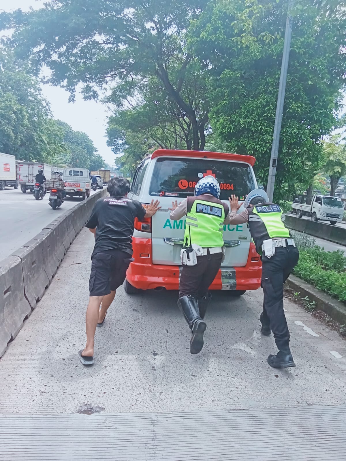 Ambulans Mogok di Tengah Jalan, Polisi Lalu Lintas Polres Jakbar Bergerak Cepat Bantu Pasien