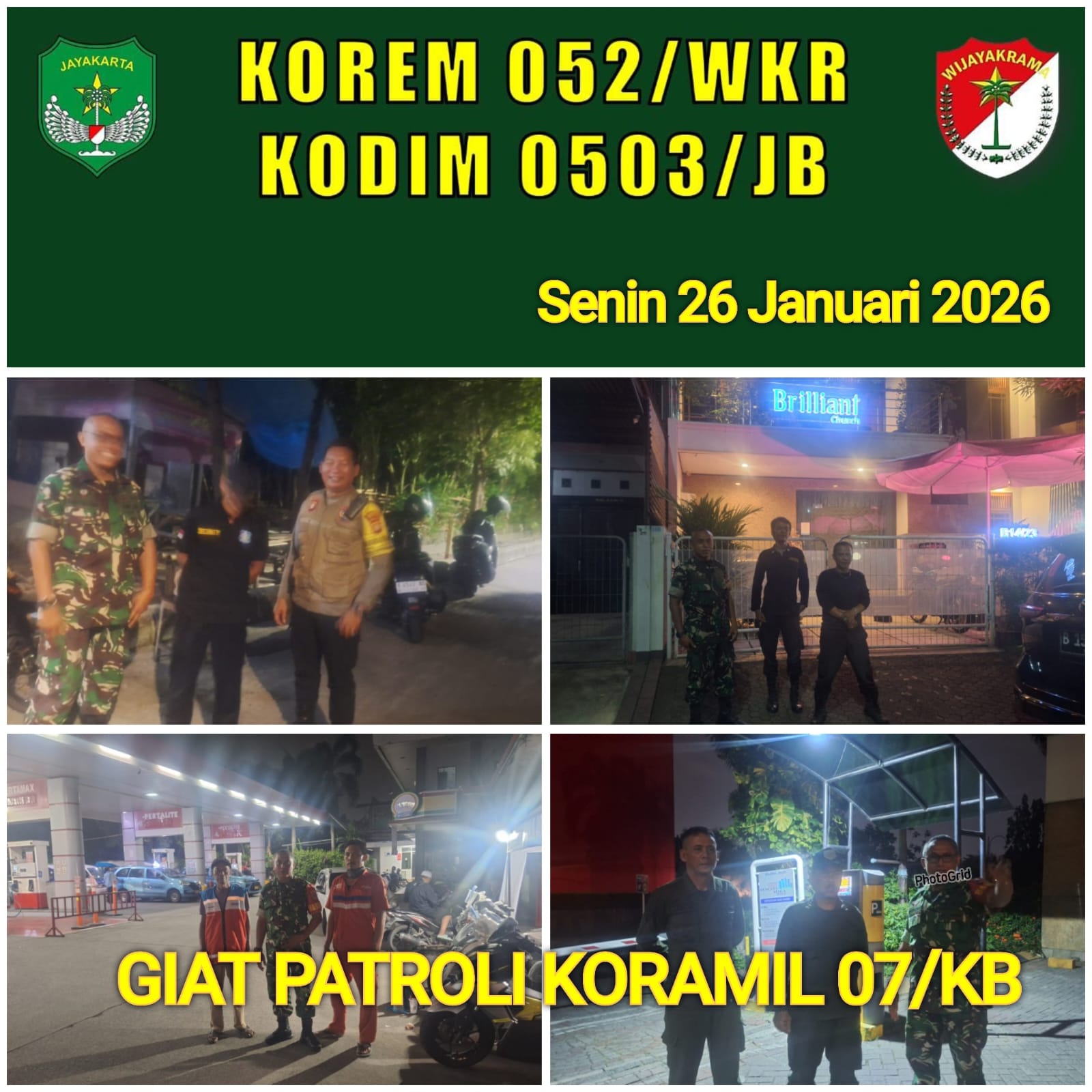 DetikSR.id Kodam Jaya Jakarta – Babinsa Koramil 07/Kembangan Serka Mustaqim bersama Komduk melaksanakan Patroli keamanan dalam rangka antisipasi Tawuran, Gank Motor, Balapan liar dan Kejahatan lainnya di wilayah. Senin malam 26 Januari 2026.