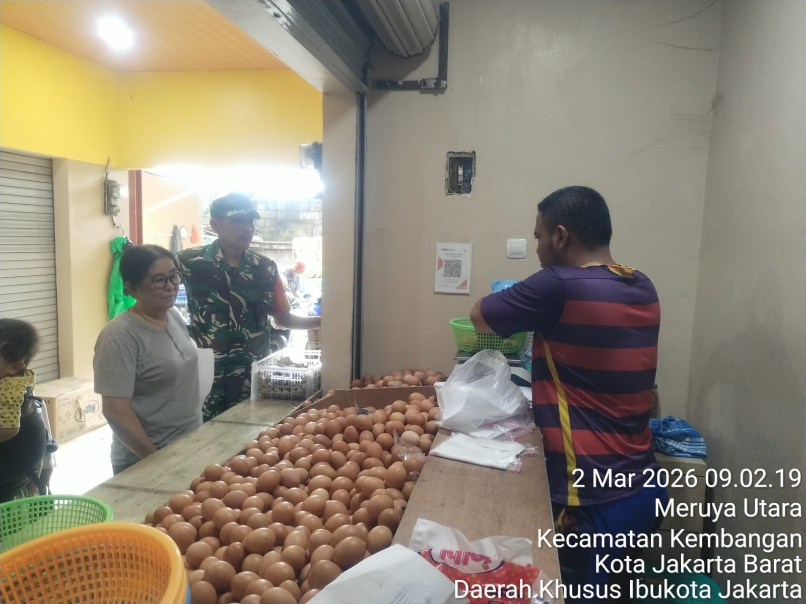 DetikSR.id Kodam Jaya Jakarta – Pastikan stock bahan pokok sembako aman, Babinsa Koramil 07/Kembangan Serka Taufik H turun langsung di pasar dan melaksanakan pengecekan perkembangan harga sembako. Senin 2/3/2026
