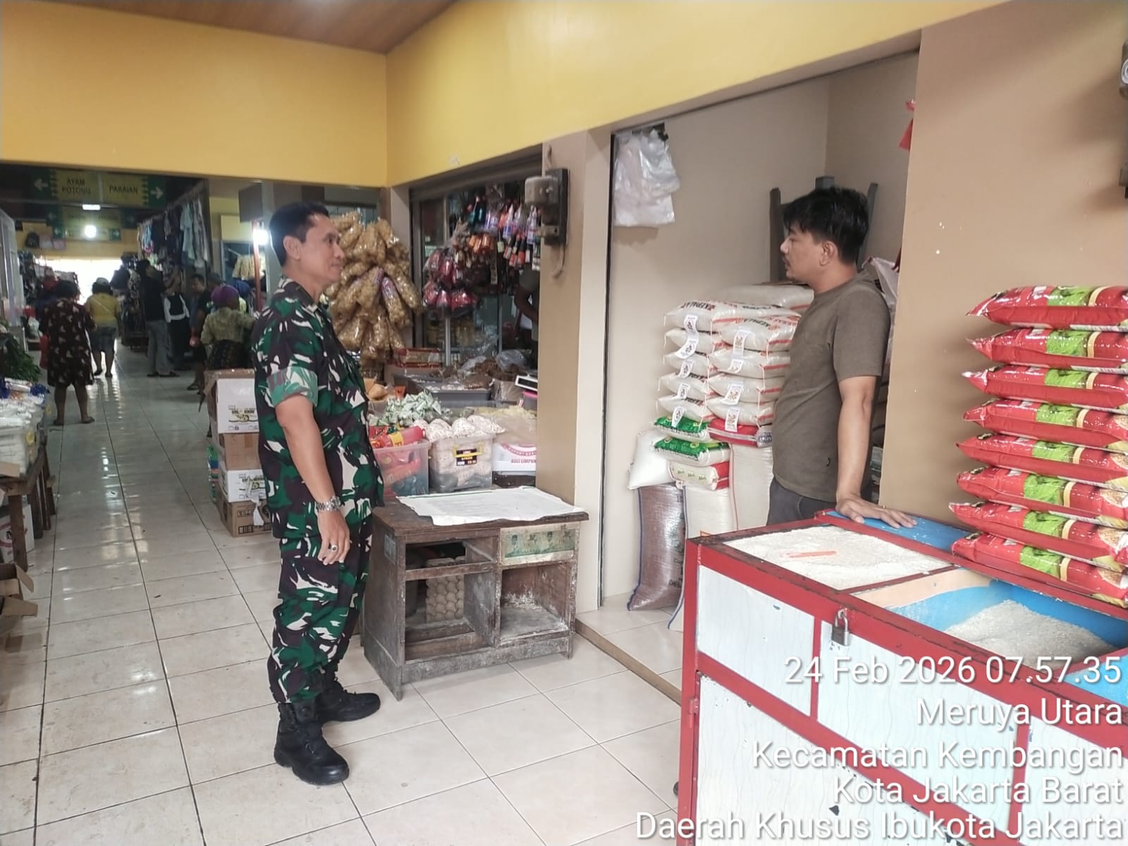 DetikSR.id Kodam Jaya Jakarta – Upaya mengantisipasi terhadap lonjakan harga dan ketersediaan bahan pokok sembako selama ramadhan, Babinsa Koramil 07/Kembangan Peltu Arief W melaksanakan pendataan perkembangan harga dengan turun langsung di pasar. Selasa 24/2/2026.