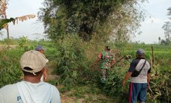 DetikSR.id Blitar – Babinsa Kelurahan Bence Koramil 0808/02 Garum Serma Yuda Indra bersama kelompok Tani (Poktan) Margo Utomo melaksanakan kegiatan pembersihan dan pemotongan pohon bambu yang menghalangi akses jalan menuju area persawahan di lingkungan Bendelaren RT. 01 RW. 06 Kelurahan Bence Kecamatan Garum Kabupaten Blitar, Sabtu (29/11/2025).