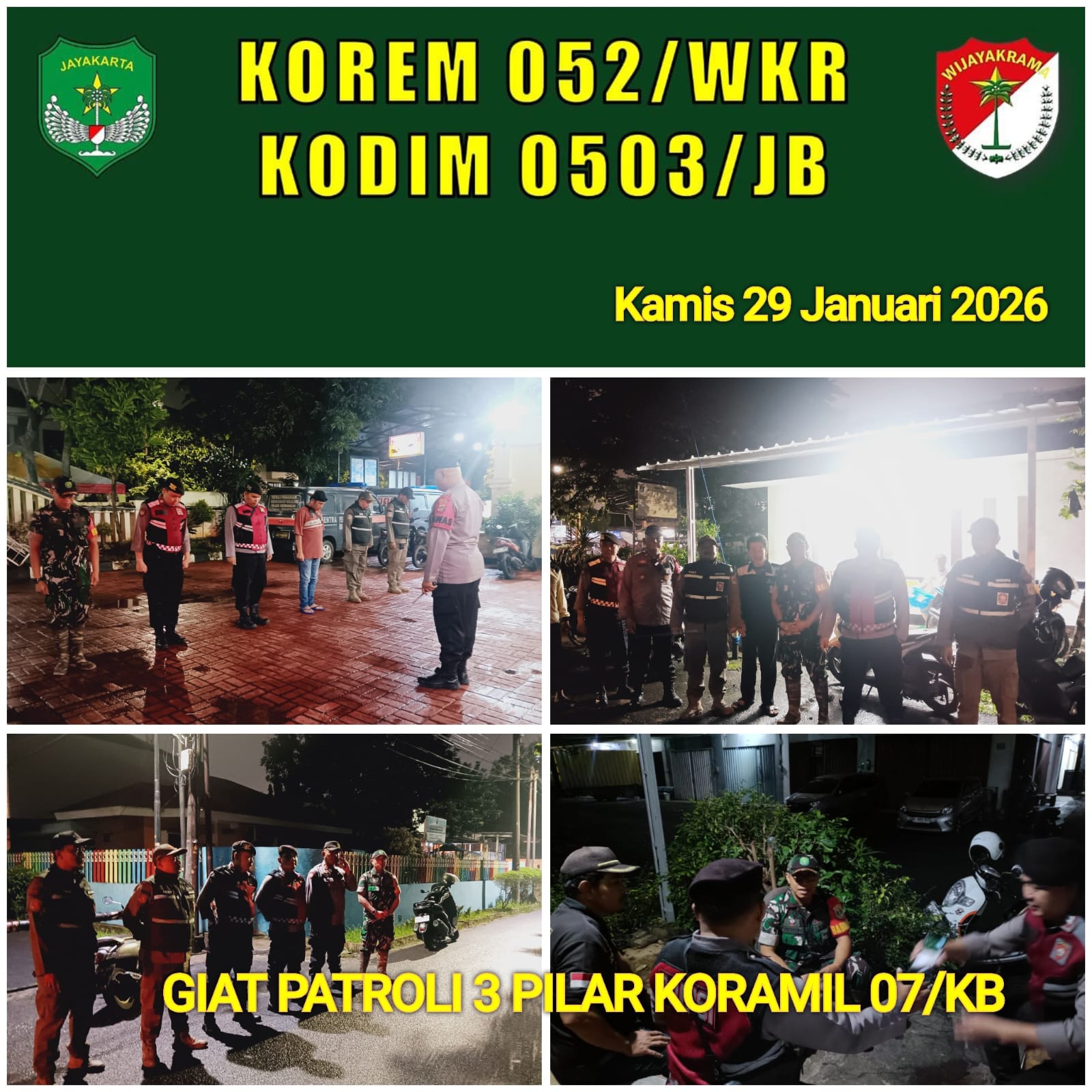 DetikSR.id Kodam Jaya Jakarta – Dalam rangkan menciptakan kondusifitas  wilayah dan antisipasi gangguan Kamtibmas, Babinsa Koramil 07/Kembangan Serka Mustaqim bersama tiga pilar Kecamatan kembangan menggelar Patroli keamanan wilayah. Kamis 29 Januari 2026 malam