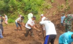 Babinsa Koramil 0808/13 Doko Bersama Warga Gotong Royong Bersihkan Material Longsor di Desa Resapombo