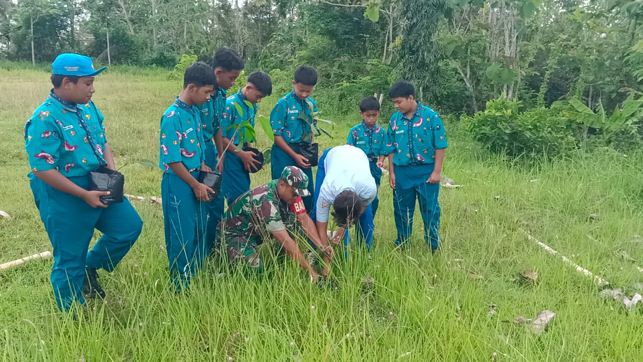 DetikSR.id Blitar – Babinsa Desa Ngeni Subramil Wonotirto Koramil 0808/09 Sutojayan Serda Aga Panoto bersama para siswa SMPN 2 Wonotirto Desa Ngeni melaksanakan kegiatan penanaman pohon trembesi, Selasa (6/1/2026). Kegiatan ini merupakan bagian dari upaya mendukung program Manunggal Alam yang bertujuan menjaga kelestarian lingkungan sejak dini.
