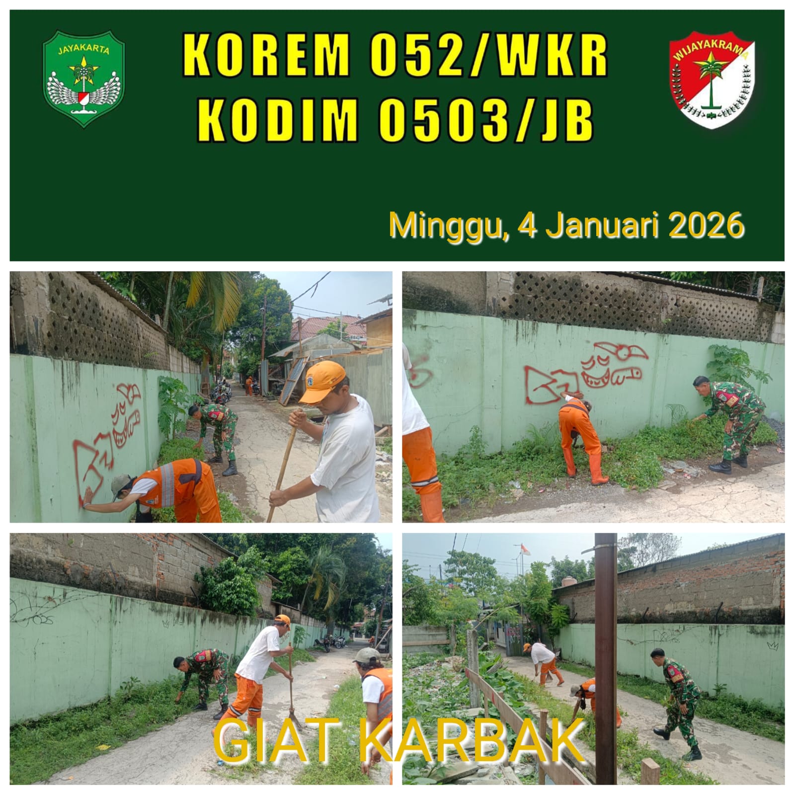 DetikSR.Id Kodam Jaya Jakarta – Jaga kebersihan dan keindahan lingkungan, Babinsa Koramil 07/Kembangan melaksanakan karya bakti pembersihan yang di fokuskan di Jl.Kartika Rt 05 Rw 18 Kel. Meruya Utara Kec. Kembangan Jakarta-Barat. Minggu 04 Desember 2026.