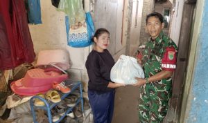 Bentuk Peduli dan Perhatian, Koramil 07/KB Bagikan Paket Sembako Kepada Warga Kurang Mampu
