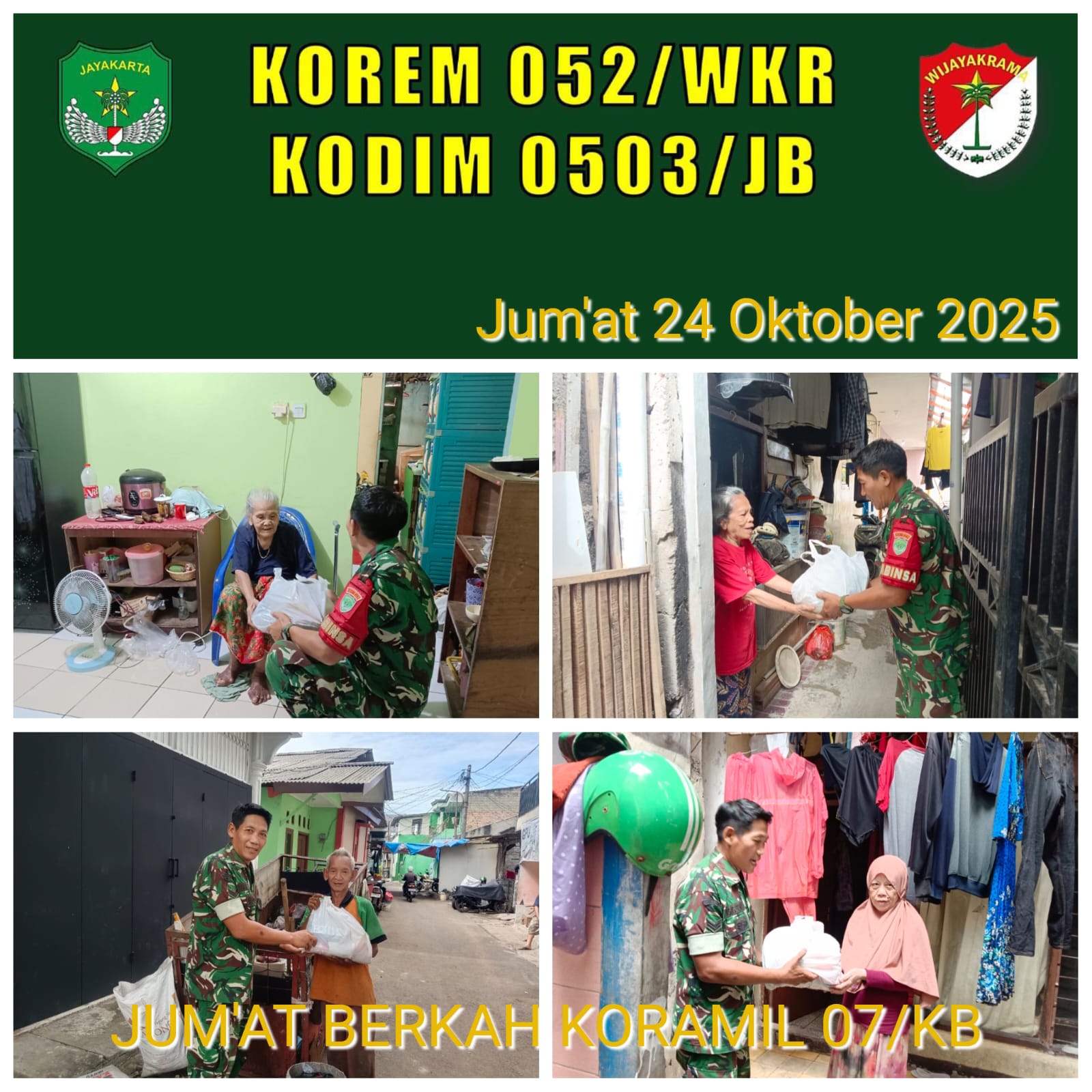 Kegiatan Jumat berkah ini merupakan kepedulian dan perhatian Koramil 07/KB terhadap warga yang membutuhkan di wilayah binaannya. Pembagian paket sembako dilakukan secara door to door dengan mengunjungi langsung rumah-rumah warga yang kurang mampu dan para janda lanjut usia.