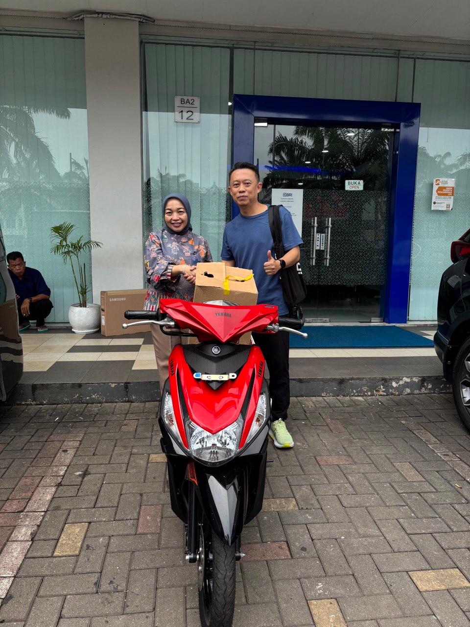 Salah satu nasabah yang beruntung kali ini adalah Bapak Iwan, yang berhasil membawa pulang hadiah berupa 1 Unit Motor Yamaha.
