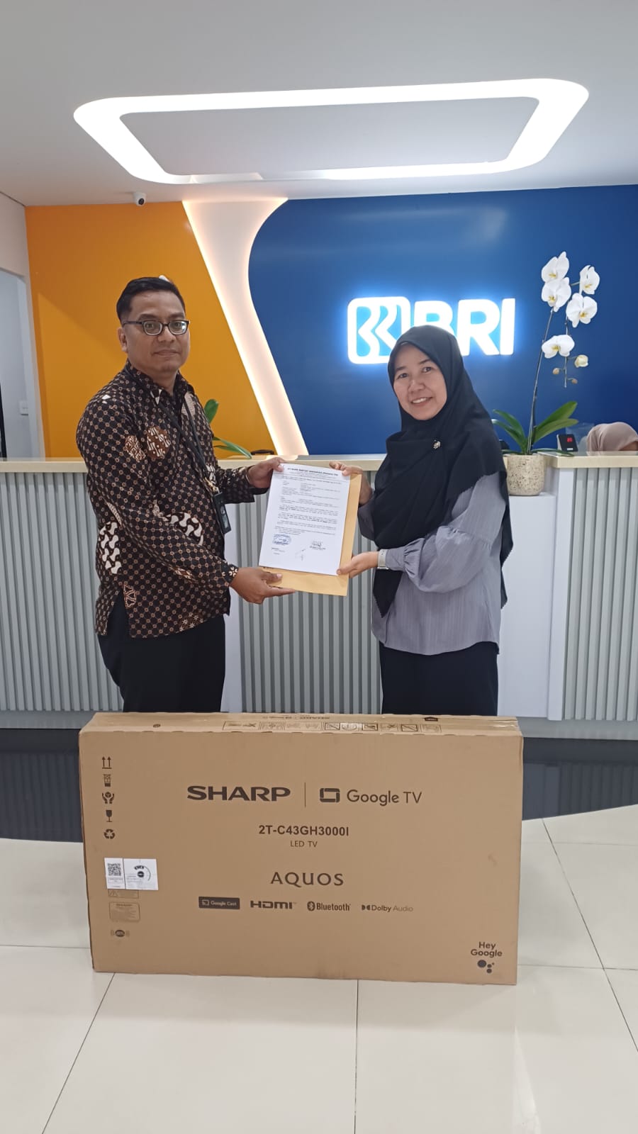 Penyerahan hadiah dilakukan secara langsung di Kantor Cabang BRI Bandara Soetta oleh perwakilan manajemen cabang, Bapak Anton Darmawan. Suasana penyerahan berlangsung hangat serta penuh kebahagiaan.