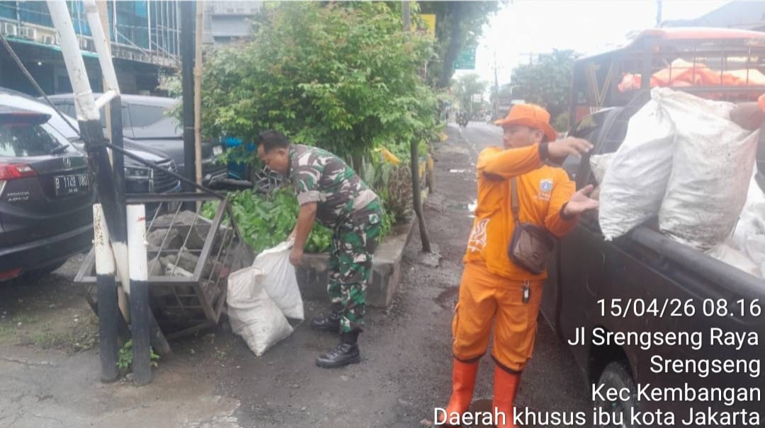DetikSR.id Kodam Jaya Jakarta – Dalam upaya pencegahan terhadap timbulnya penyakit dan polusi udara, Koramil 07/Kembangan menggelar Karya Bakti pembersihan Lingkungan di Jl Srengseng Raya RT 02/02 Kel Srengseng Kec. Kembangan Jakarta Barat. Rabu 15 April 2026