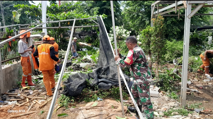 Pembersihan lingkungan ini diinisiasi oleh Sertu Syawal dengan menggandeng empat petugas PPSU yang dipimpin oleh Bapak Dorcan. Kegiatan dilaksanakan secara bergotong royong, bahu-membahu membersihkan sampah yang menumpuk.