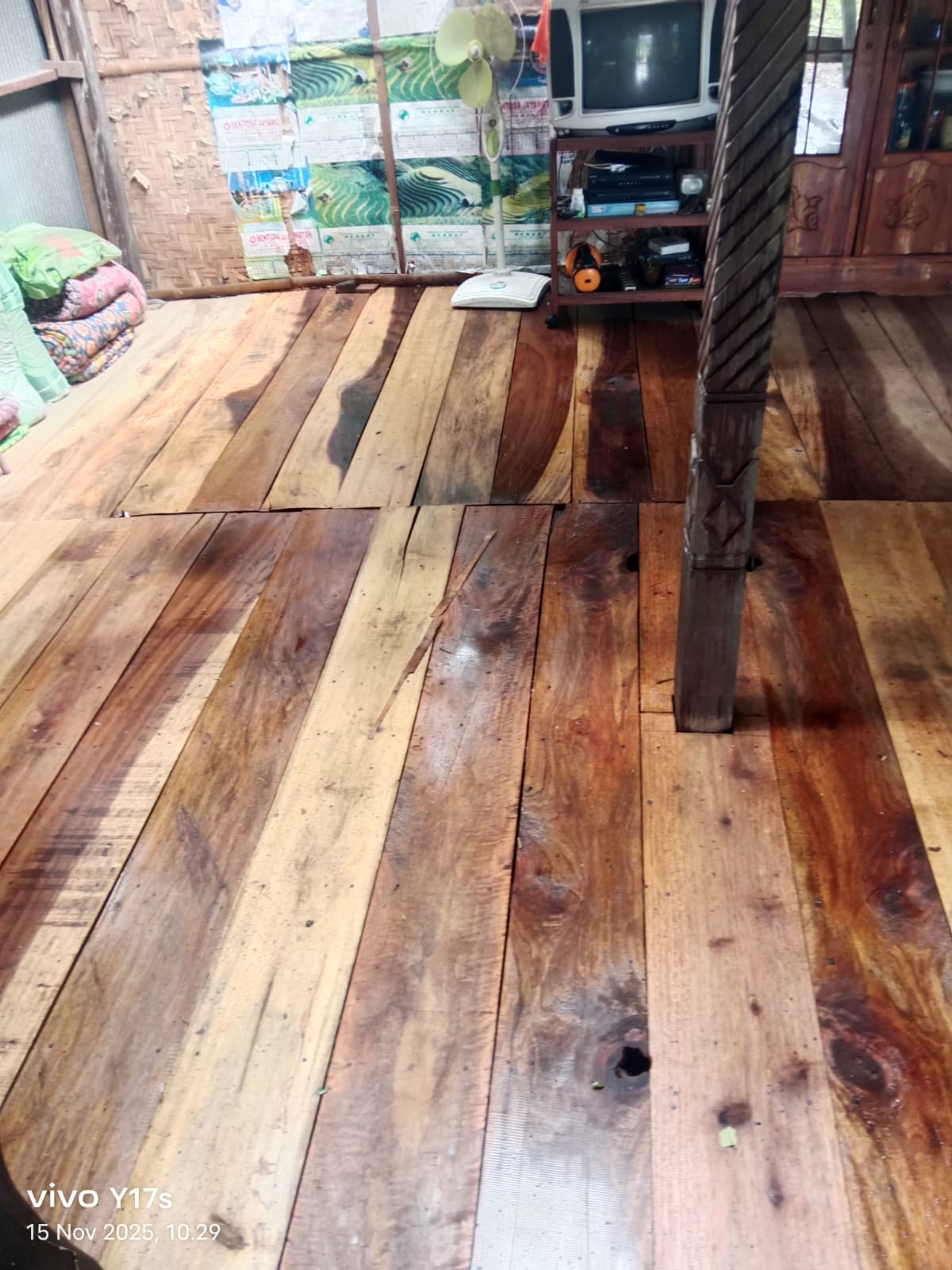 Berdasarkan dokumentasi di lapangan, bagian atap rumah warga tampak roboh dan berserakan. Struktur rangka kayu serta seng yang terlepas menunjukkan kuatnya hembusan angin yang menerjang kawasan tersebut.