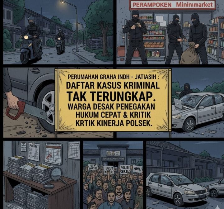 DetikSR.id BEKASI – Situasi keamanan di Perumahan Graha Indah, Kelurahan Jati Mekar, Kecamatan Jatiasih, Kota Bekasi, kini berada di titik nadir. Serangkaian kasus kriminal yang terjadi sepanjang tahun 2025 tanpa ada pelaku yang tertangkap, memuncak dengan insiden terbaru pencurian dengan pemberatan (Curas) modus pecah kaca mobil.