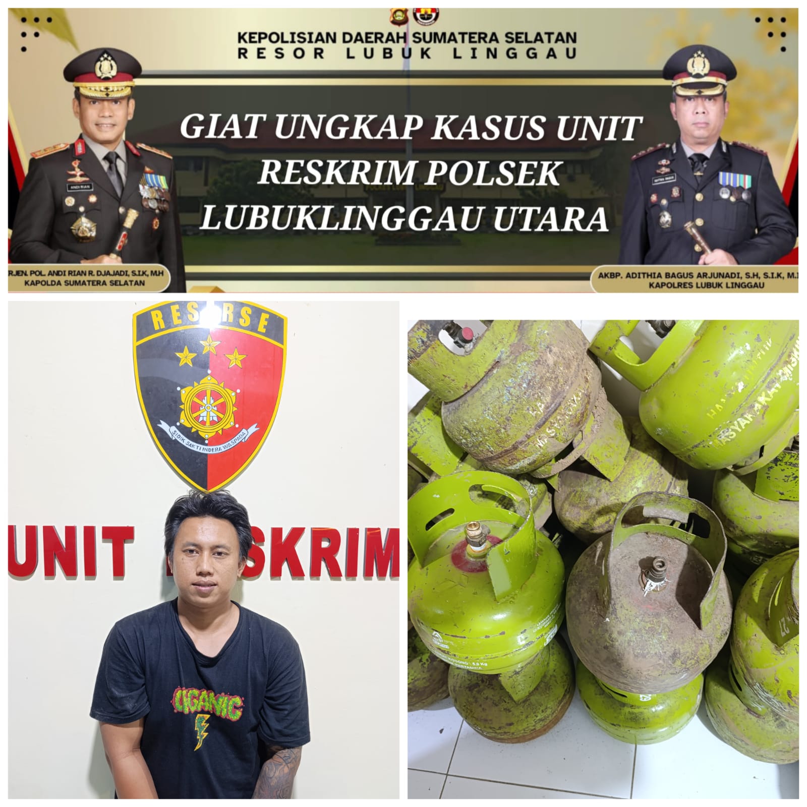 “Akibat peristiwa tersebut korban mengalami kerugian sebanyak 31 tabung gas 3kg yang ditafsir dengan uang senilai Rp6,2 juta”, ujarnya. Setelah laporan korban diterima, kemudian Anggota Unit Reskrim Polsek Lubuk Linggau Utara 1 langsung melakukan cek TKP. Dari oleh TKP ditemukan tempat membawa tabung gas hasil curian tersebut, Kemudian dan dilakukan interogasi beberapa orang yang sedang berada di sekitar TKP dan diperoleh informasi dan identitas pelaku. Selanjutnya pelaku berhasil diamankan.