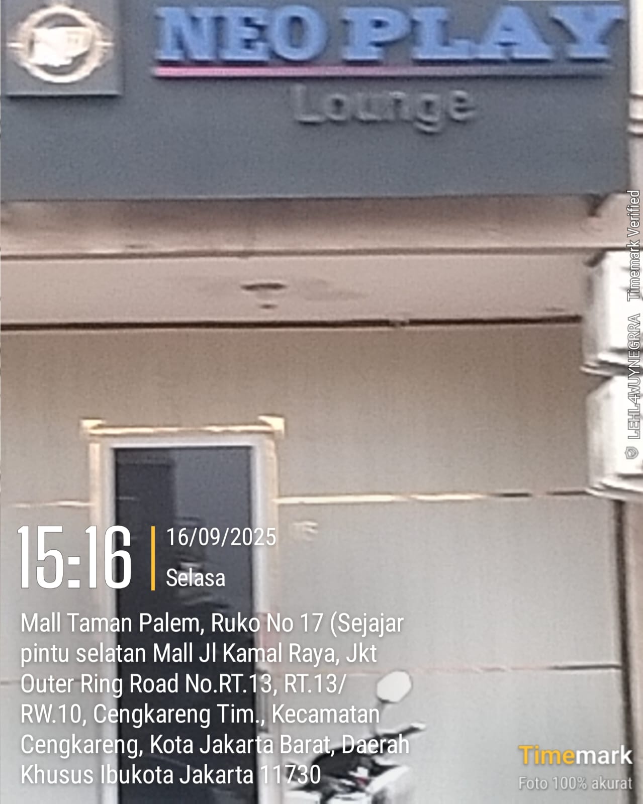 DetikSR.id Jakarta – Neo Play Lounge dilokasi Mall Taman Palam, ruko No.17 (sejajar pintu selatan mall) jl. Kamal Raya, Cengkareng timur, Jakarta Barat diduga menyediakan prostitusi terselubung. Hingga saat ini belum mendapatkan respon dari Pemkot Jakarta Barat dan menjadi pertanyaan besar bagi awak media. Selasa (16/9/2025).
