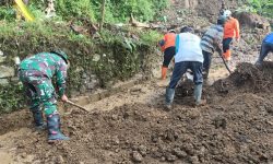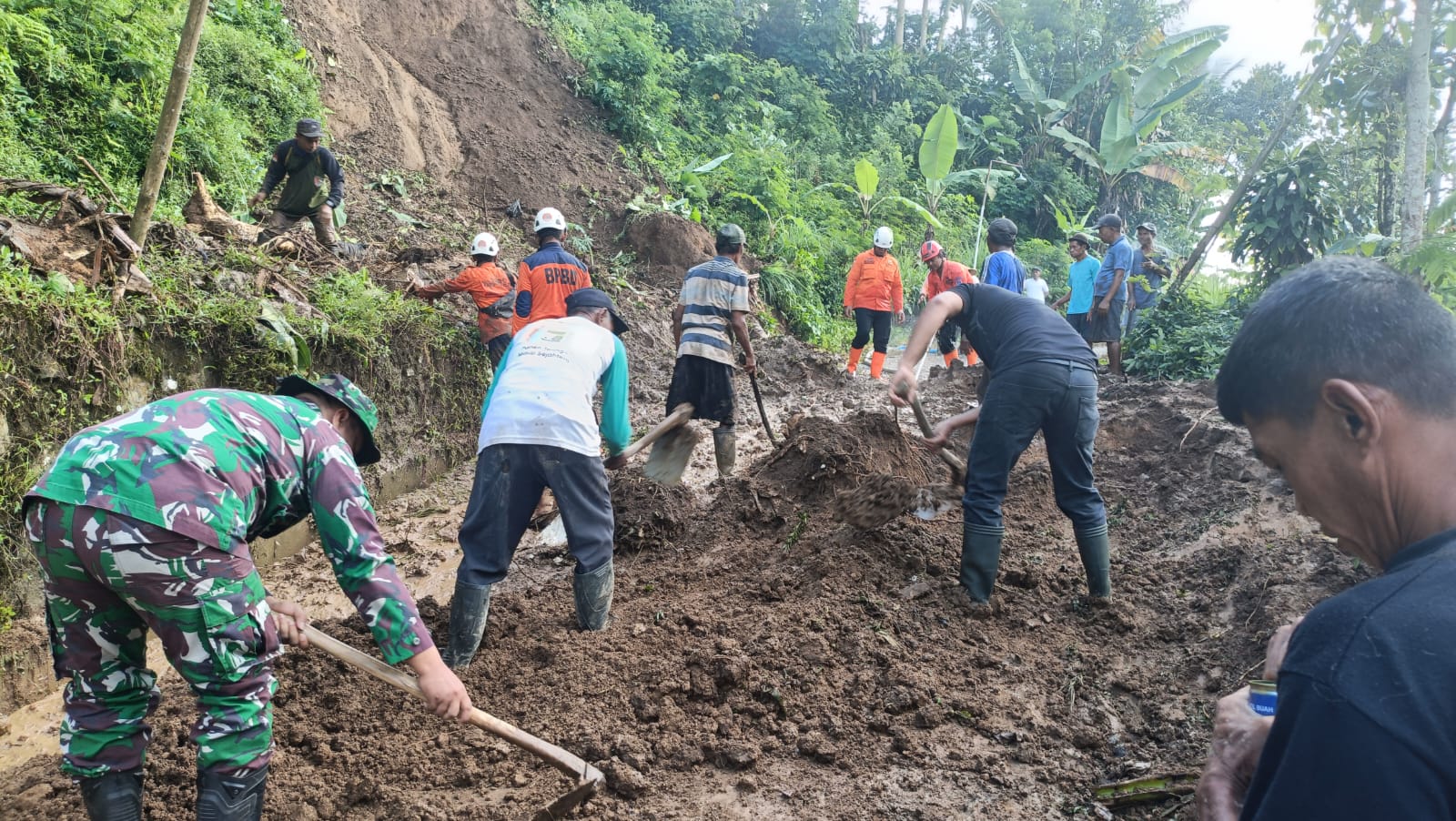Sehingga kendaraan roda dua maupun roda empat tidak dapat melewati jalan tersebut. Dengan alat yang sudah kami siapkan, kami bersama masyarakat bergotong-royong membersihkan material longsor berupa tanah yang menutupi jalan,” Tambahnya.