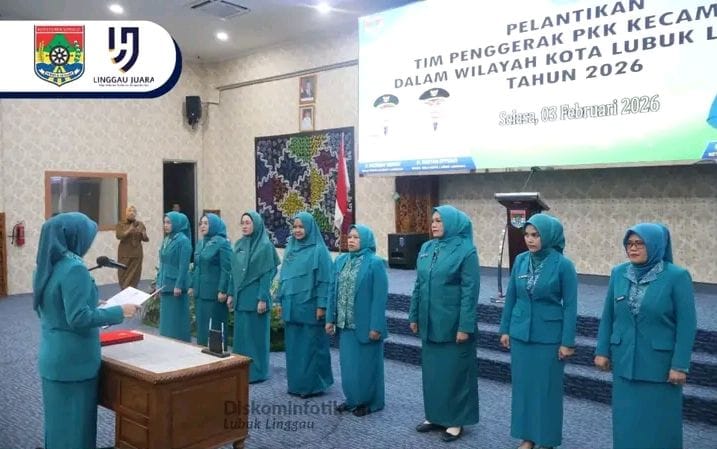 Hj Risca Priba Ayu selaku Ketua TP PKK Kota Lubuk Linggau melantik Ketua TP PKK Kecamatan, Ketua Pembina Posyandu Kecamatan dan Bunda PAUD Kecamatan dalam wilayah Kota Lubuk Linggau di Cinema Hall Lantai 5 Pemkot Lubuk Linggau. Selasa (03/02/2026).