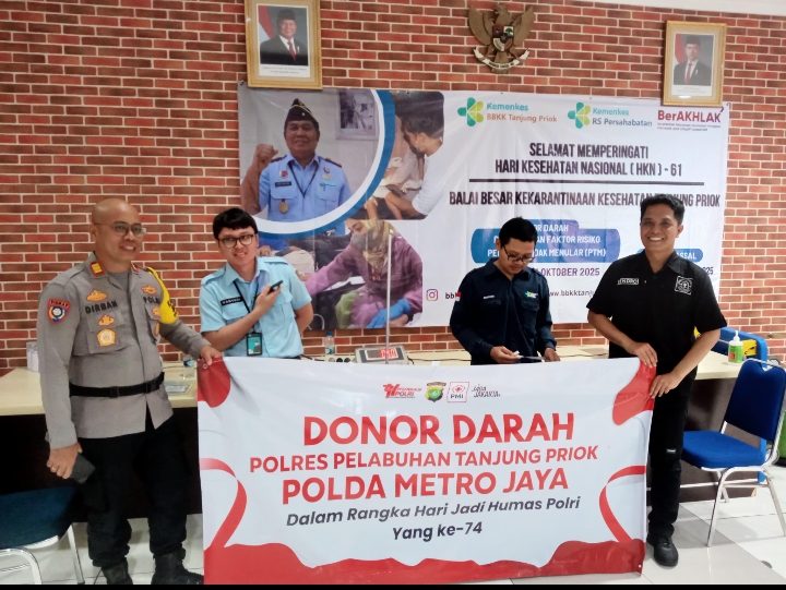 DetikSR.id Jakarta – Dalam rangka memperingati Hari Jadi ke-74 Humas Polri, Sihumas Polres Pelabuhan Tanjung Priok bekerjasama dengan Kantor Kesehatan Pelabuhan Kelas I Tanjung Priok menyelenggarakan kegiatan Donor Darah sebagai bentuk nyata kepedulian dan pengabdian kepada masyarakat. Kegiatan kemanusiaandilaksanakan pada tanggal 22 Oktober 2025, dengan melibatkan seluruh personel Polres Pelabuhan Tanjung Priok serta masyarakat, pegawai, karyawan di sekitar Pelabuhan Tanjung Priok.