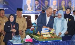 HUT Partai NasDem ke – 14 ini, juga diwarnai potong tumpeng oleh Katua DPD Partai NasDem, H.Rachmat Hidayat , penyerahan bingkisan.