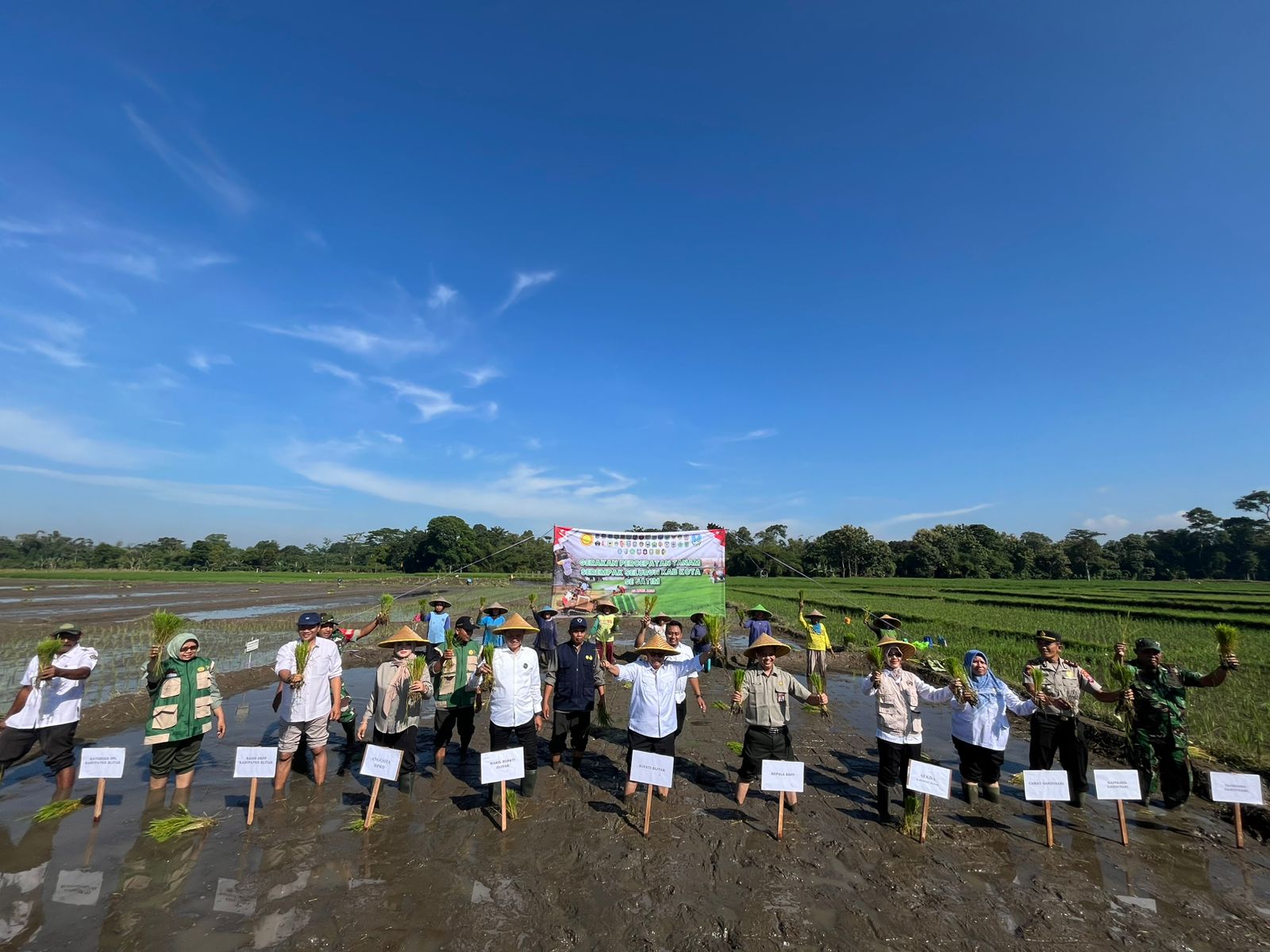 Ikuti Tanam Padi Serentak Se-Jatim, Babinsa Butun Bersama Forkopimda Perkuat Swasembada Pangan