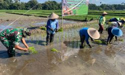 Kegiatan tersebut merupakan bentuk sinergi antara TNI, pemerintah daerah, dan para petani yang tergabung dalam Kelompok Tani (Poktan) Rukun Santoso IV. Tidak hanya sekadar hadir, Babinsa juga aktif mendampingi para petani mulai dari tahap awal pengolahan lahan hingga proses tanam padi di sawah.