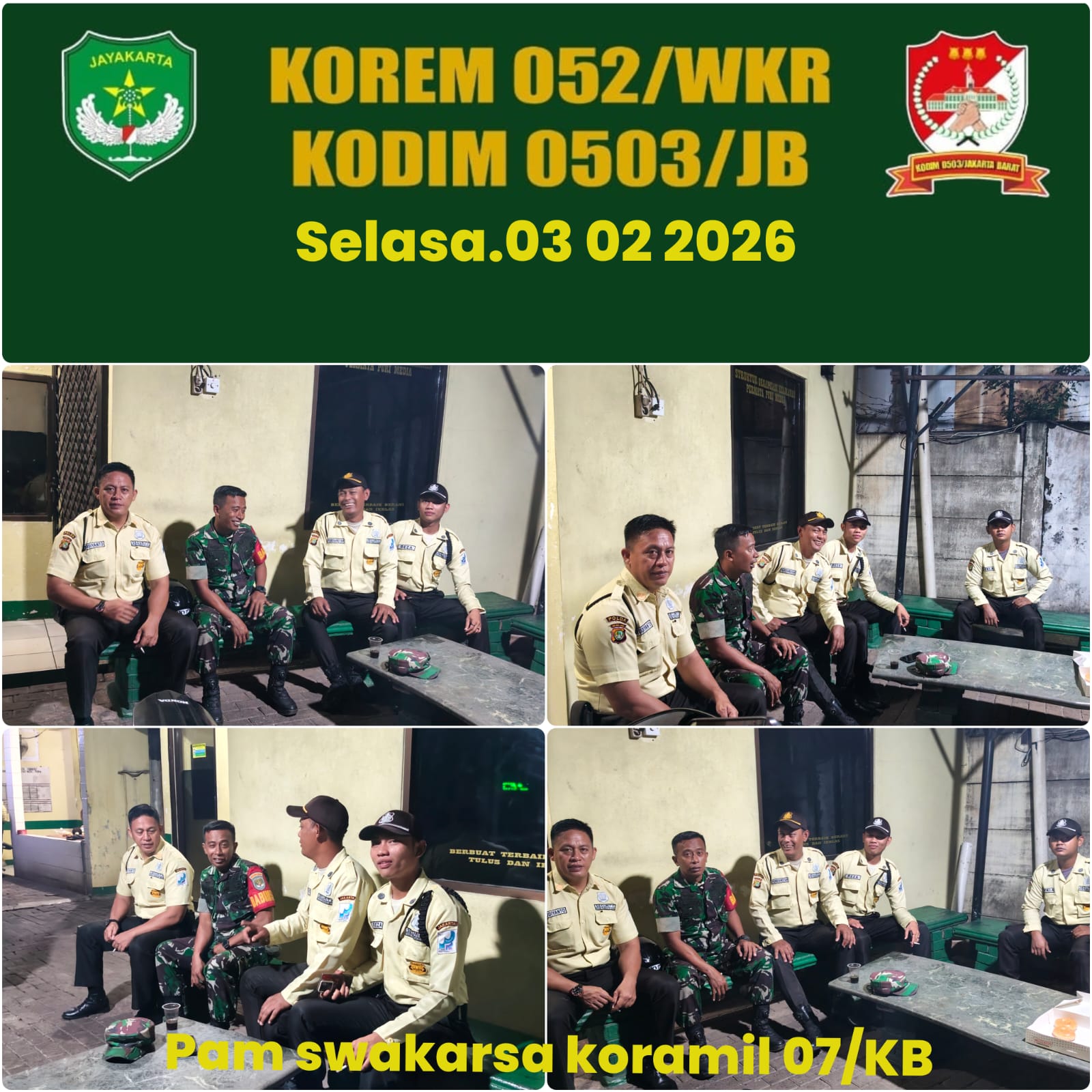DetikSR.id Kodam Jaya Jakarta – Tingkatkan keamanan lingkungan, Babinsa Koramil 07/Kembangan Serka Yulianto melaksanakan Sambang dialogis dalam kegiatan siskamling PAM swakarsa dengan security keamanan  di Pos Keamanan perumahan Puri Media land  Jl.kembangan Raya  Rt 09/01 Kel. Kembangan Utara Kec  Kembangan Jakarta Barat. Selasa 3 Pebruari 2026 malam.