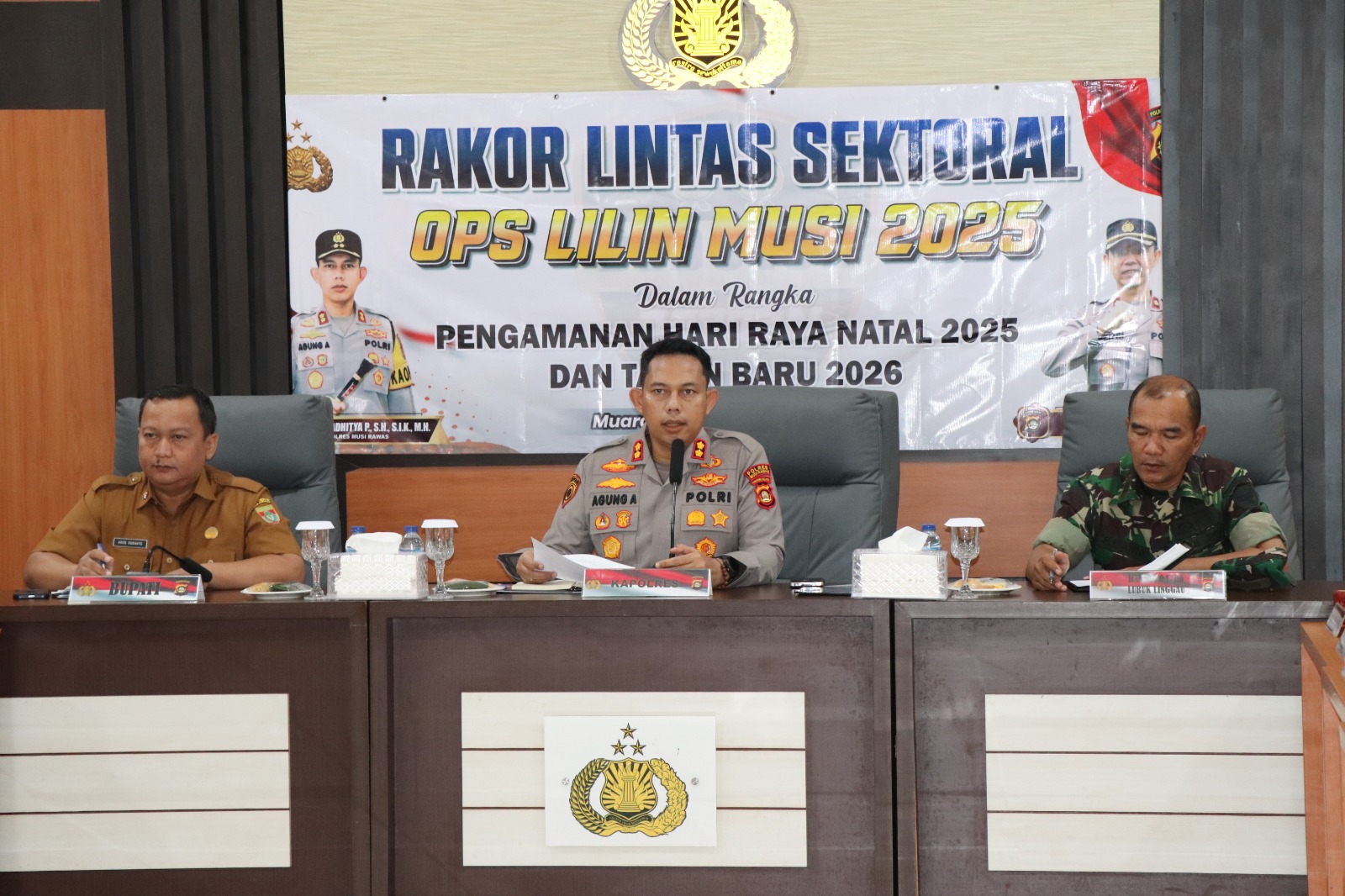 DetikSR.id MUSIRAWAS – Dalam rangka pengamanan perayaan Hari Raya Natal Tahun 2025 dan Tahun Baru 2026 (Nataru), Polres Musi Rawas ( Mura ) bersama Forum Koordinasi Pimpinan Daerah (Forkopimda) menggelar Rapat Koordinasi Lintas Sektoral Operasi Lilin Musi Tahun 2025, bertempat di Ruang Pesat Gatra Polres Musi Rawas, Senin (15/12/2025).