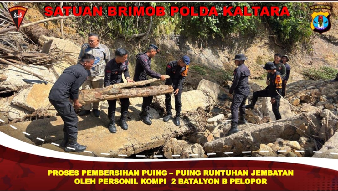 Jembatan Roboh Diterjang Arus, Brimob Kaltara Gerak Cepat Pulihkan Akses Warga
