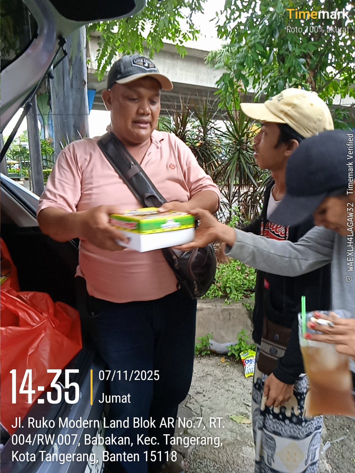 Pembagian nasi kotak Jumat Berkah ini dilakukan di depan Ruko Modernland XPRESS, dengan sasaran utama adalah tukang parkir, pengemudi ojek, serta warga sekitar yang membutuhkan.