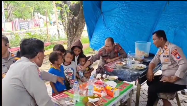 Dalam kegiatan tersebut, Kapolres dan anggotanya terlihat mengajak berbincang, memberikan dukungan moral, serta membagikan makanan kepada anak-anak serta warga yang membutuhkan. Suasana penuh keakraban tampak ketika para anggota kepolisian duduk bersama warga tanpa sekat, menunjukkan nilai kemanusiaan dan kedekatan Polri dengan masyarakat.