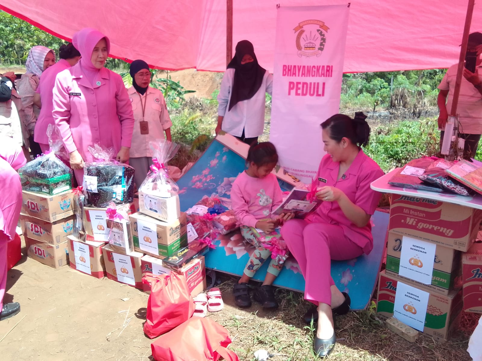 Kapolres Lubuk Linggau dan Ketua Bhayangkari Gelar Bakti Sosial untuk Korban Musibah Angin Puting Beliung