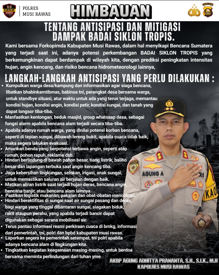Kapolres Musi Rawas Sampaikan 12 Himbauan Kepada Masyarakat Waspada BADAI SIKLON TROPIS