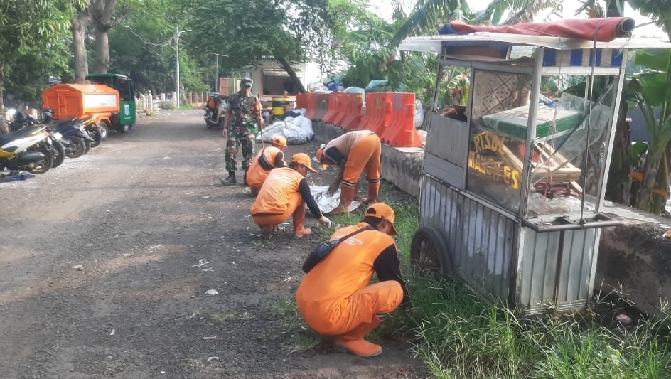 Hadir dan memimpin langsung kegiatan Babinsa Serka Yulianto berkolaborasi dengan PPSU 4 Orang di pimpin Imam. Kegiatan karya bakti di fokuskan pada pembersihan sampah dan saluran air sebagai antisipasi terhadap banjir saat musim penghujan.