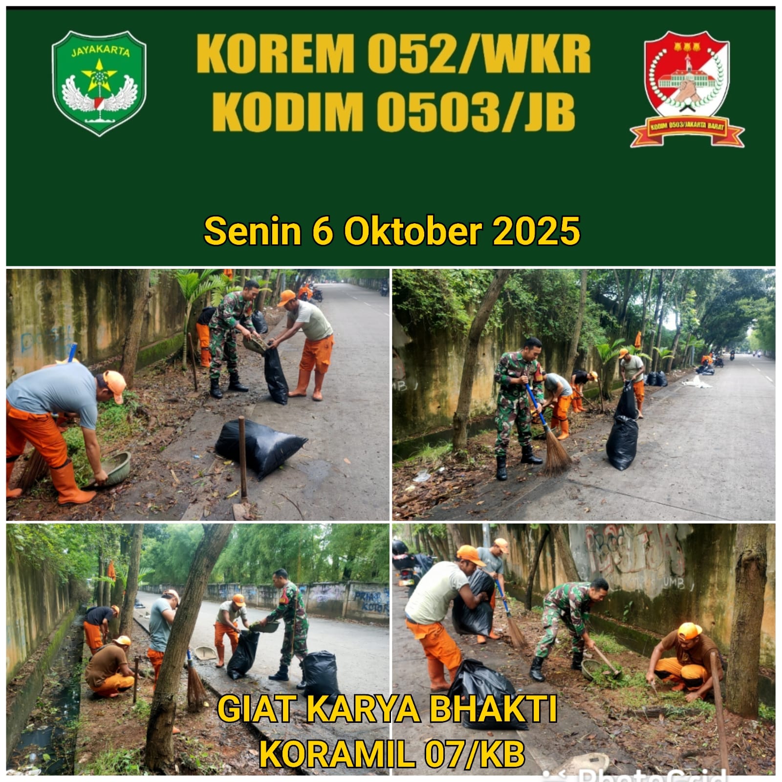 DetikSR.id Kodam Jaya Jakarta – Lingkungan yang bersih dan sehat adalah impian setiap warga. Semangat inilah yang mendorong Babinsa Koramil 07/KB untuk melaksanakan aksi bakti di Jalan Manunggal RT. 002/01, Kelurahan Meruya Selatan, Kecamatan Kembangan, Jakarta Barat, pada Senin, 6 Oktober 2025.