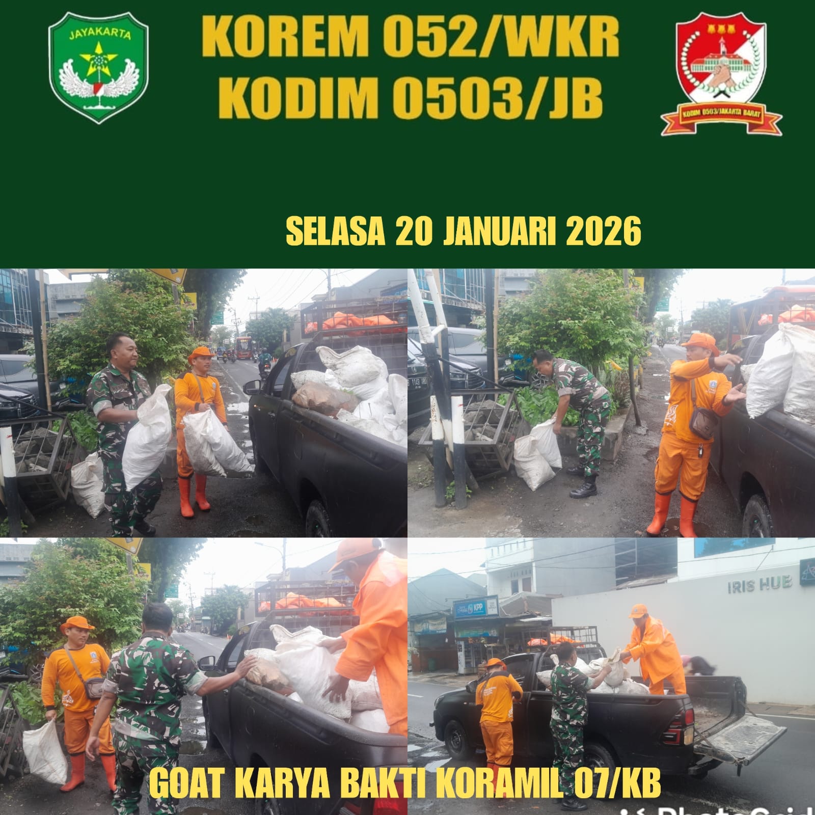 DetikSR.id Kodam Jaya Jakarta – Bukti nyata dalam menjaga kebersihan lingkungan, Koramil 07/Kembangan gelar kegiatan Karya Bakti Pembersihan Lingkungan yang di pusatkan di Jl.Srengseng Raya RT 02/03 Kel Srengseng Kec. Kembangan, Jakarta Barat. Selasa 20 Januari 2026