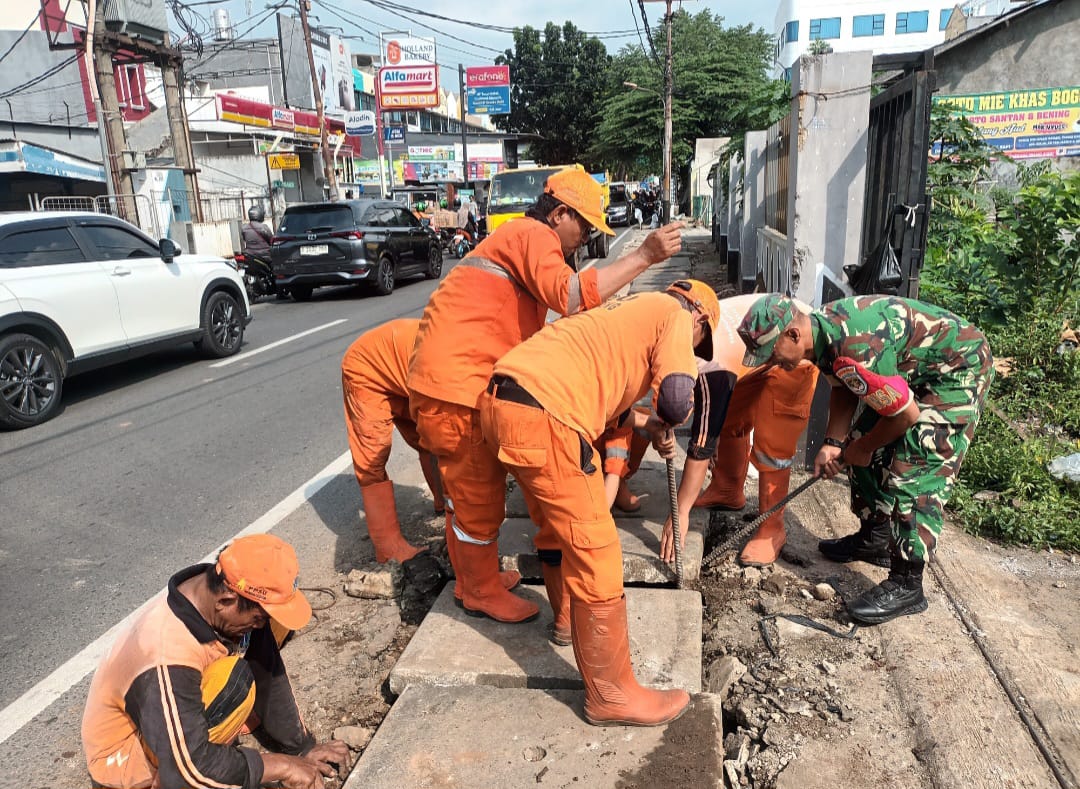 Karya Bakti Koramil 07/Kembangan: Serka Saidin Bersama PPSU Bersihkan Saluran Air
