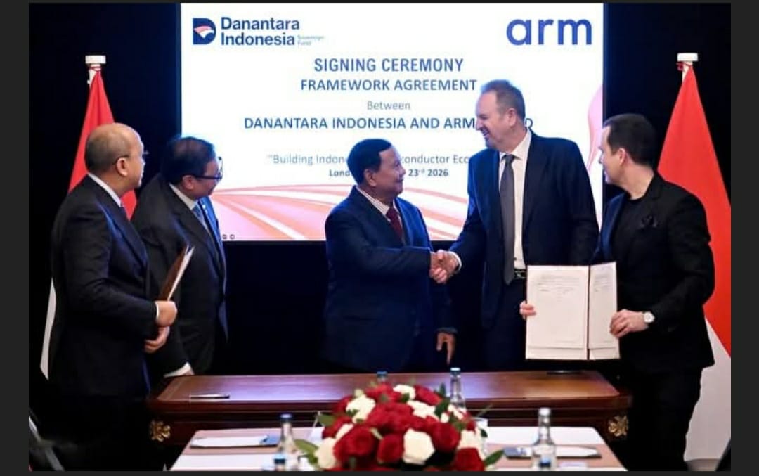 DetikSR.id Inggris, Presiden Prabowo saksikan kemitraan Danantara–Arm, Indonesia percepat lompatan industri semikonduktor Presiden RI Prabowo Subianto menyaksikan penandatanganan perjanjian kerangka kerja antara Badan Pengelola Investasi Danantara (BPI Danantara) dan Arm Limited, di London, Inggris, (23/02/2026),