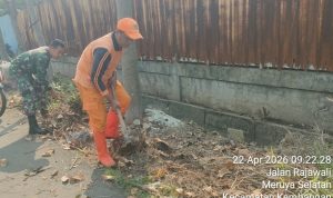 Kolaborasi bersama PPSU, Sertu Syawal Bersih Bersih Lingkungan dalam Karya Bakti Koramil 07/Kembangan