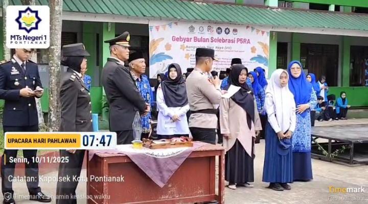 “Selamat kepada ananda Nayla Zakiyatil Fikriyah (kelas 9 H) yang akan mengikuti lomba olimpiade Bahasa Arab tingkat nasional di jakarta. Mudah-mudahan Nayla pada saat perlombaan mendapatkan yang terbaik. Yang dapat memberikan kebanggaan bagi diri sendiri, bagi orang tua maupun sekolah MTS Negeri 1 Pontianak” Ucap Kombes Pol Suyono, S.I.K., S.H., M.H. Kapolres Pontianak di sesi pelepasan Ananda Nayla. Senin, (10/11/2025).