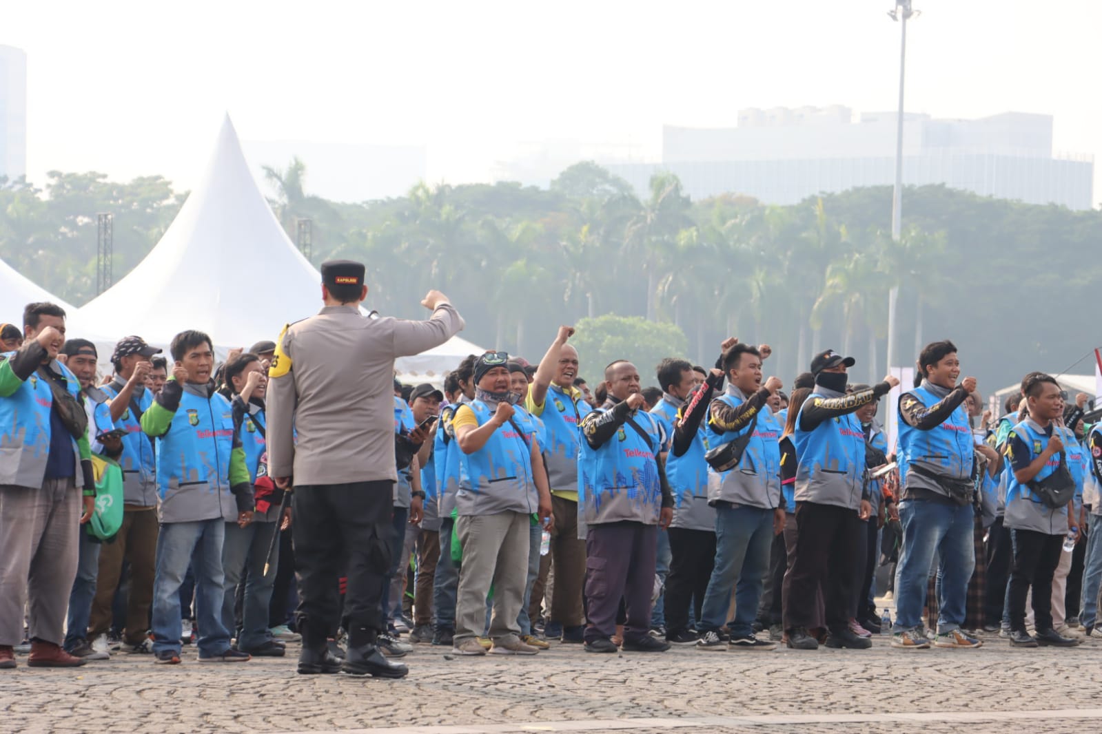 “Kami memastikan bahwa seluruh peserta Ojol Kamtibmas yang berangkat telah mengenakan helm, kendaraan layak pakai, surat kendaraan dan sim serta atribut aplikator sesuai dengan ketentuan Peraturan Gubernur DKI Jakarta, mengingat Monas adalah kawasan tertib atribut,” jelas AKBP Martuasah.