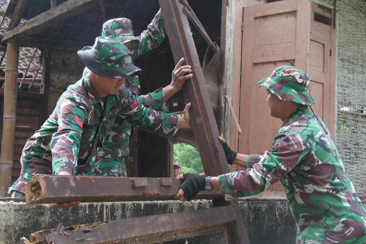 Seperti salah satu rumah warga milik Mbah Sutrisno (75) warga Dusun Barurejo Desa Krisik pada hari ini dilaksanakan pembongkaran yang dilakukan oleh Satgas TMMD Kodim 0808/Blitar, Rabu (11/02/2026).