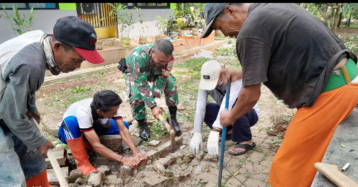 Hadir dan memimpin langsung karya bakti Babinsa Sertu Syawal berkolaborasi dengan PPSU kelurahan Meruya selatan 4 Orang di pimpin Dorcan. Kegiatan di fokuskan pada pembongkaran conblock.