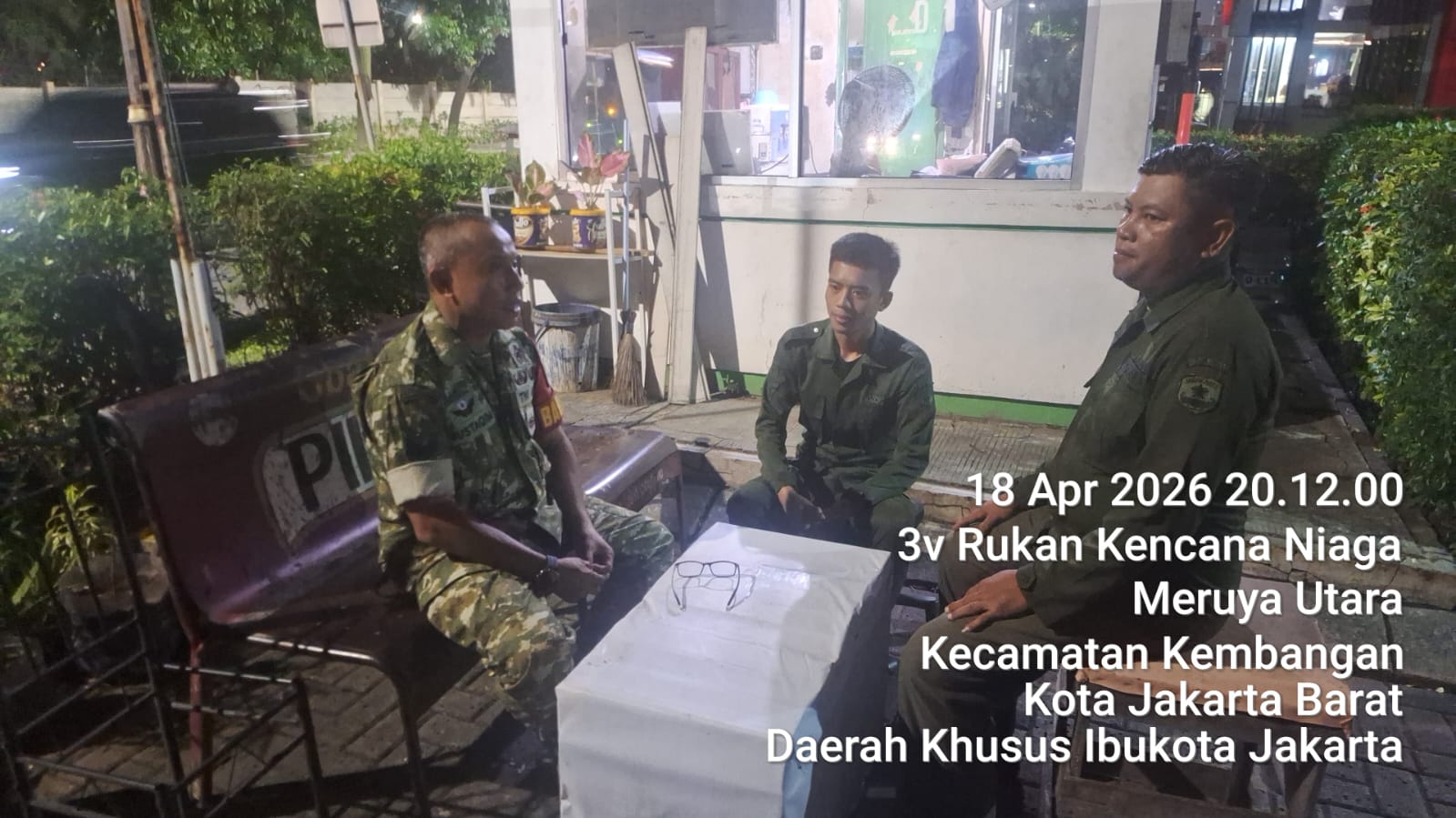 DetikSR.id Kodam Jaya Jakarta – Babinsa  Koramil 07/KB Serka Mustaqim Beserta Komponen pendukung (Komduk) dan juru parkir  melaksanakan monitoring Siskamling  PAM  Swakarsa dan patroli sambang di pos siskamling di Pos Taman Aries Blok D Jl.Taman Aries Rt 05/08 kel. Meruya Utara Kec. Kembangan Jakarta Barat. Sabtu malam 18 April 2026