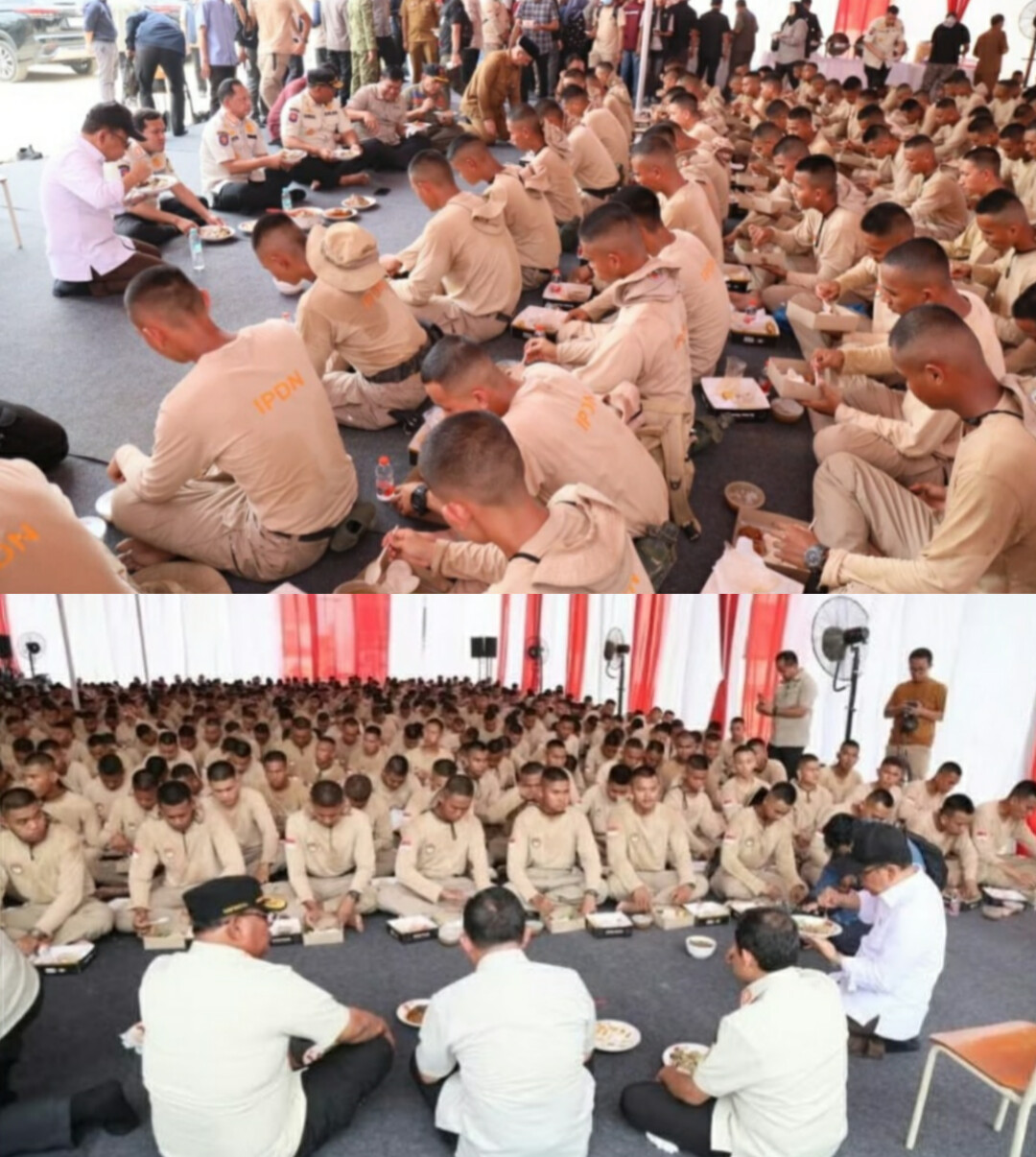 Suasana makan siang berlangsung sederhana namun penuh kehangatan. Mendagri tampak duduk bersama para praja tanpa sekat, berbincang santai sambil menikmati hidangan yang telah disiapkan.