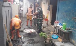 Mengantisipasi Banjir, Babinsa Sertu Heru Bersama PPSU Membersihkan Saluran Air dalam Kegiatan Karya Bakti Koramil 07/KB