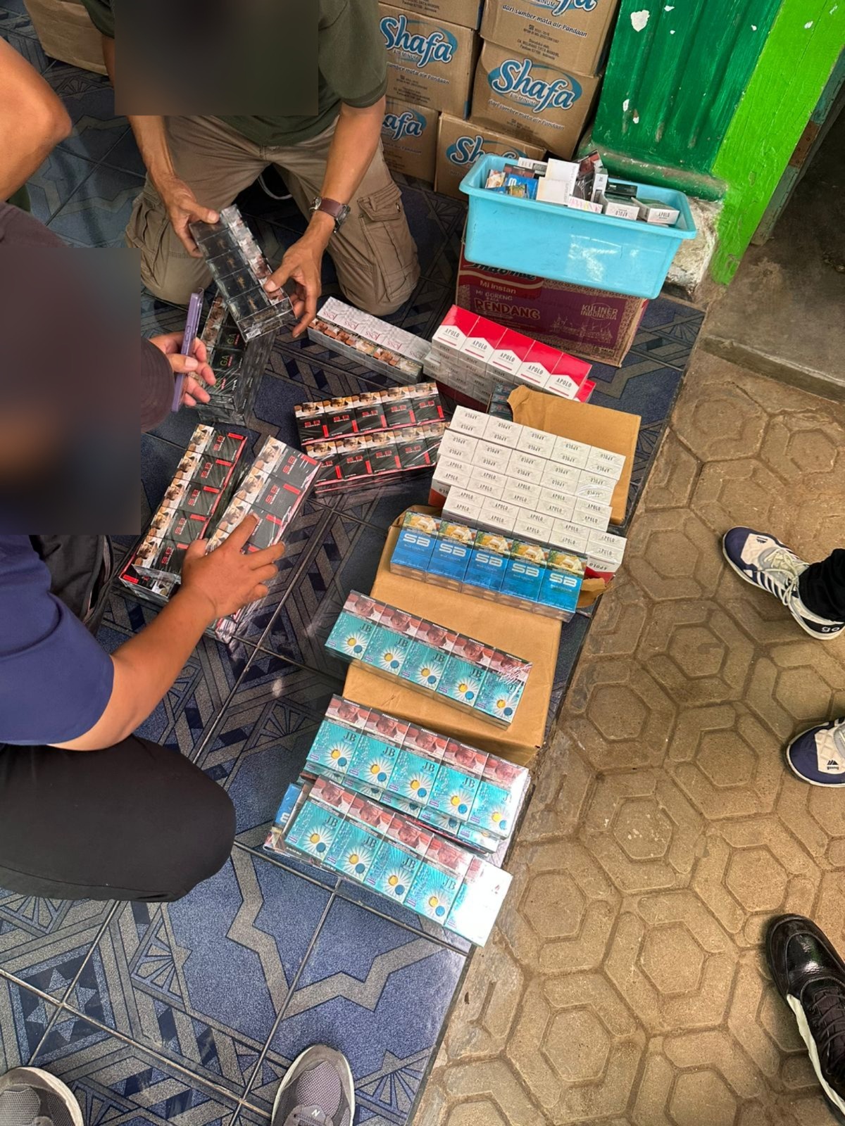 Total temuan di lokasi ini mencapai 39 bungkus atau setara 780 batang rokok, dengan perkiraan nilai barang sebesar Rp1.171.100 dan potensi kerugian negara mencapai Rp 589.560. Selang beberapa menit kemudian, tepat pada pukul 10.33 WIB, pemeriksaan dilanjutkan ke toko lain yang masih berada di lokasi yang sama. Pada toko tersebut, tim kembali mendapati rokok ilegal berbagai merek tanpa pita cukai sebanyak 40 bungkus atau 800 batang, dengan perkiraan nilai barang Rp1.188.000 serta potensi kerugian negara sebesar Rp596.800.