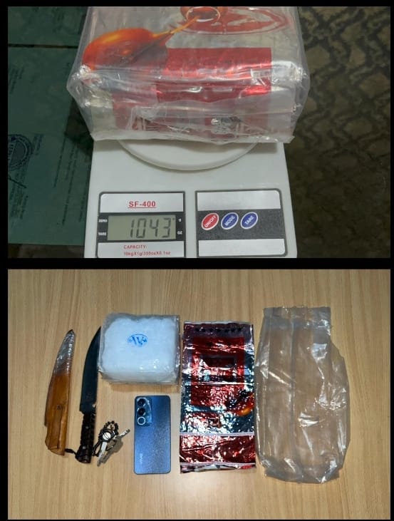 Dari hasil penangkapan berhasil diamankan barang bukti berupa satu bungkus besar plastik Teh berwarna merah berisikan kristal kristal putih diduga Narkotika Jenis Shabu dengan berat brutto 1.043 gram (1 kg) . Satu bilah pisau baja komando. Satu buah sarung pisau berwarna cokelat. Satu unit ponsel Android merk VIVO Y19s berwarna biru. Satu buah tas ransel berwarna cokelat merk POLOARAY. Satu unit sepeda motor merk Yamaha NMAX berwarna hitam dengan Nopol BG 2930 GI.