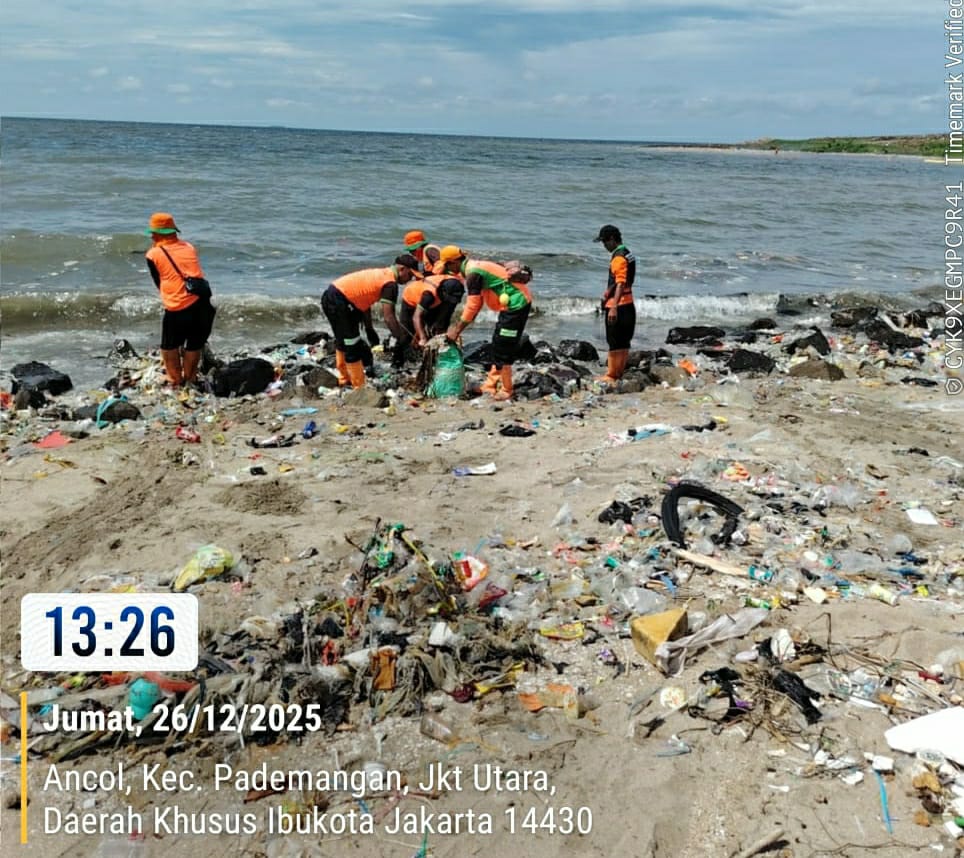 Pada Jumat pagi, 26 Desember 2025, aksi bersih-bersih pantai terluar kembali digelar di kawasan Ancol, Jakarta Utara, sebagai respons atas penumpukan sampah kiriman yang mencemari bibir pantai dan berpotensi mengganggu ekosistem laut.