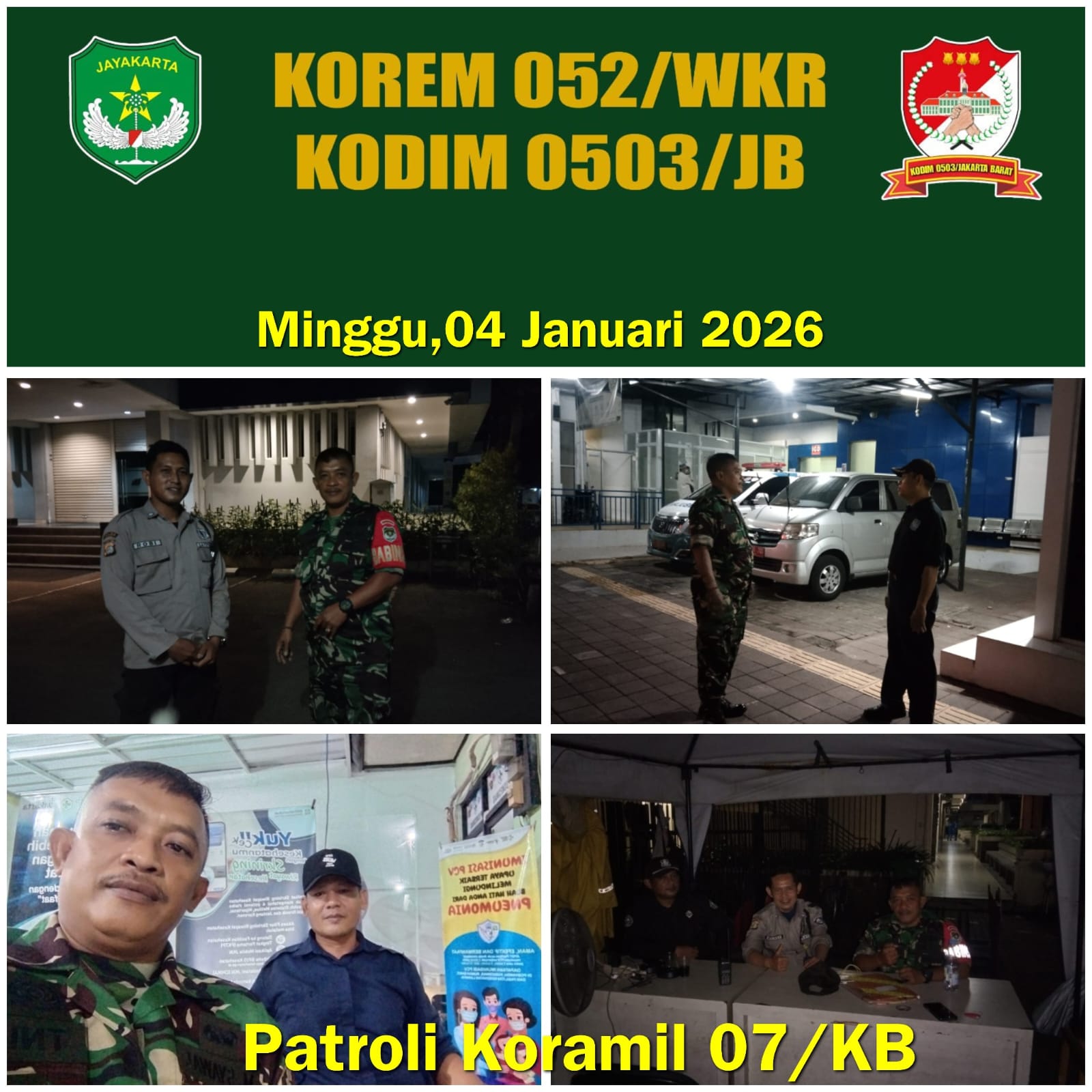 DetikSR.id Kodam Jaya Jakarta – Pastikan wilayah aman dan kondusif, Babinsa Koramil 07/kembangan Sertu Syawal bersama Komduk gelar Patroli keamanan Koramil 07/KB dalam rangka antisipasi Tawuran, Gank Motor, Balapan liar dan Kejahatan lainnya. Minggu 04 Januari 2026 dini hari.
