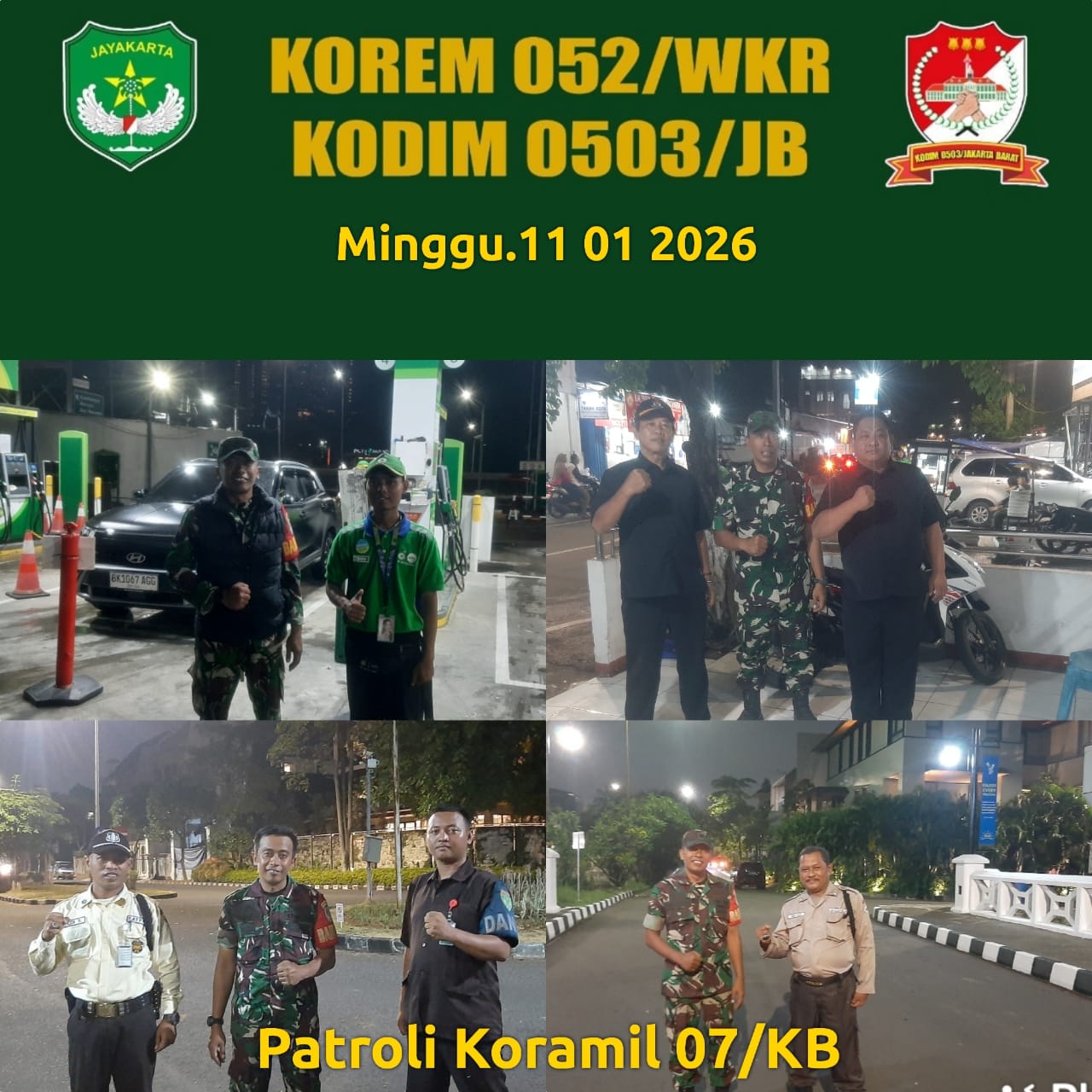 DetikSR.id Kodam Jaya Jakarta – Ciptakan situasi wilayah aman dan kondusif, Babinsa Koramil 07/KB Serka Yulianto bersama Komponen pendukung (Komduk) gelar Patroli dalam rangka antisipasi Tawuran, Gank Motor, Balapan liar dan Kejahatan lainnya ,Minggu 11 Januari 2026 dini hari.